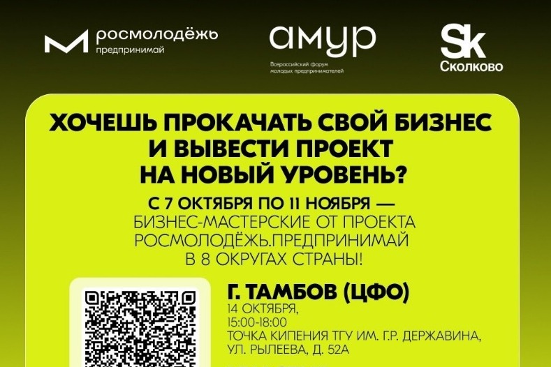 Тамбов станет площадкой для крупного образовательного события (6+) в сфере молодежного предпринимательства. Пройдет оно с 13 по 15 октября в «Точке кипения» ТГУ имени Г.Р. Державина (ул. Рылеева, 52а) в очном формате окружного интенсива для управленческих команд федеральной программы Росмолодёжь.Предпринимай «Национальная экосистема молодежного предпринимательства».