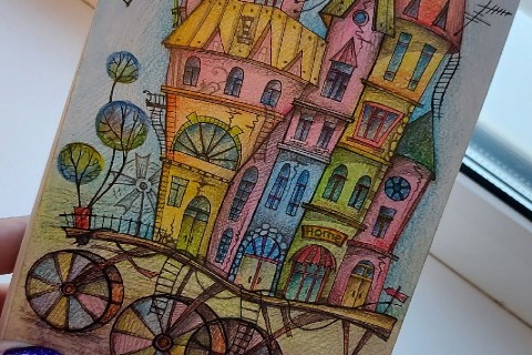 На занятии «Сказочный домик» каждый участник сможет нарисовать свой сказочный домик, таким, каким он его видит. Примером для вдохновения может стать коллекция картин Ксении о волшебных городах.