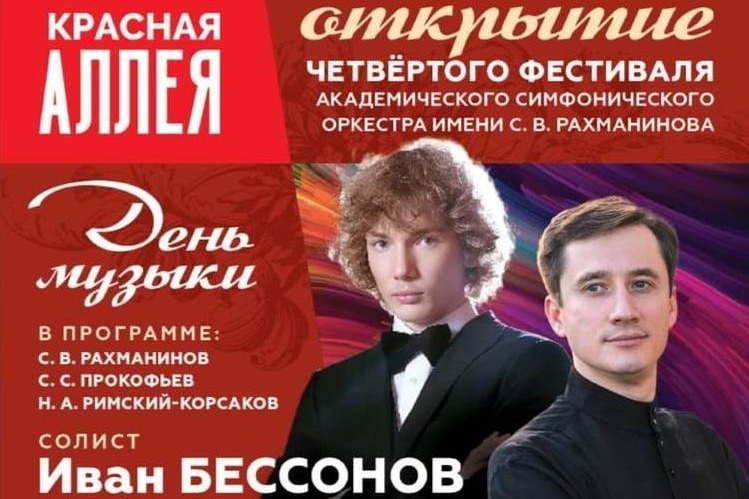 В Тамбове 1 октября состоится открытие четвертого фестиваля «Красная аллея» (6+), который является визитной карточкой культуры региона. Специальным гостем станет выдающийся пианист Иван Бессонов. Он выступит вместе с Академическим симфоническим оркестром имени С.В. Рахманинова под руководством Алексея Моргунова.