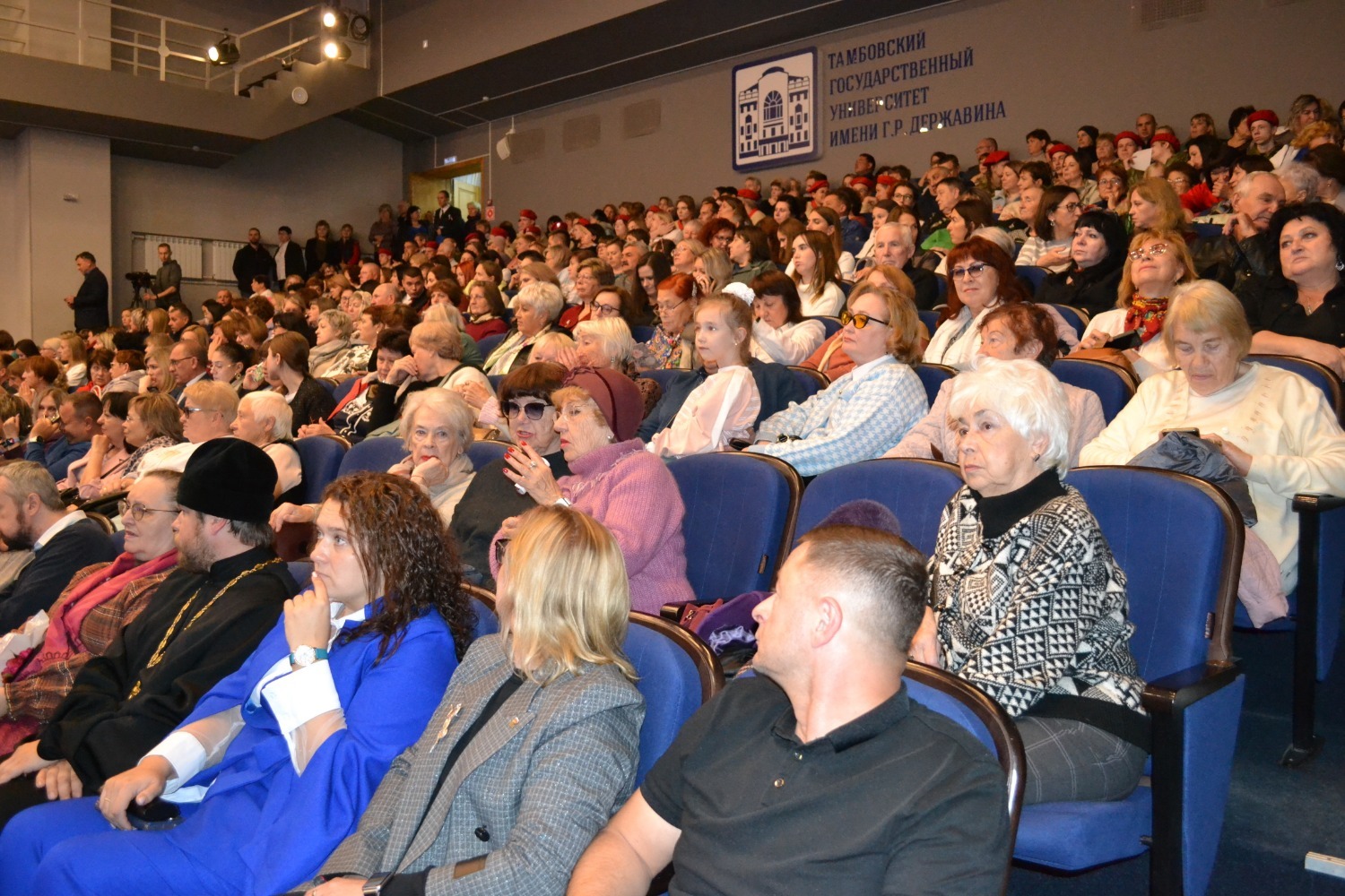 В зале Учебного театра вуза собрались тамбовчане, которым выпала возможность увидеть на сцене не только популярного актера и режиссера Дмитрия Певцова, но и артистов столичных театров - вокалистов и мастеров художественного слова. Все они стали участниками концерта-спектакля под названием «Был и есть у России вечной прочности вечный запас».