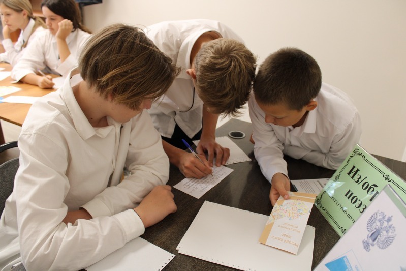 Она состояла не только из теоретического блока, где школьники повторили основы стихосложения и поближе познакомились с необычными формами стихов, попутно порассуждав о том, может ли каждый стать поэтом, но и практического. Он больше напоминал заседание литературного объединения. Школьников разделили на несколько команд и они старательно перефразировали поэтические строчки, писали свой синквейн и даже… цифровые стихи.