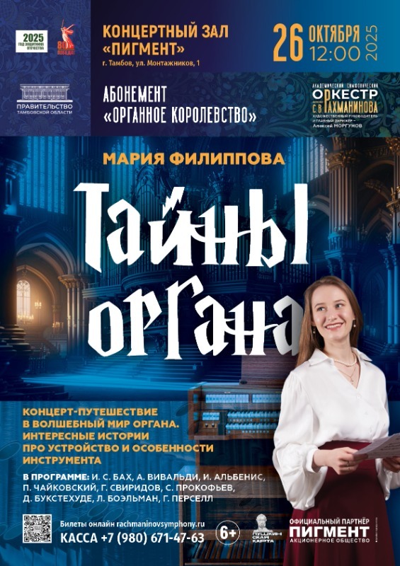 Оркестр имени С.В. Рахманинова запускает образовательный проект — детский органный абонемент «Органное королевство». Первый интерактивный концерт цикла под названием «Тайны органа» (6+) состоится уже 26 октября в концертном зале АО «Пигмент».