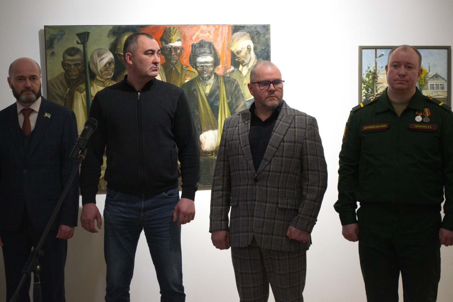 На открытии выставки собрались зрители самого разного возраста, и, конечно братья по оружию – участники специальной военной операции. Как рассказала директор картинной галереи Тамара Шестакова, организационная работа по открытию этой выставки в Тамбове началась еще в марте прошлого года. Имя профессионального художника из Курска Дениса Гаврилейко известно у нас давно, но обстоятельства сложились так, что его персональная выставка в Тамбове стала возможна только сейчас, а работы художника пришлось срочно доставлять после очередной выставки в Москве, невзирая на снежный апокалипсис, накрывший среднюю полосу России.
