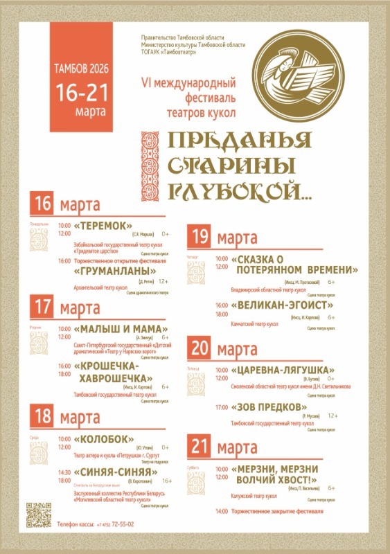 С 16 по 21 марта 2026 года в Тамбове пройдет VI Международный фестиваль театров кукол «Преданья старины глубокой…» (0+).