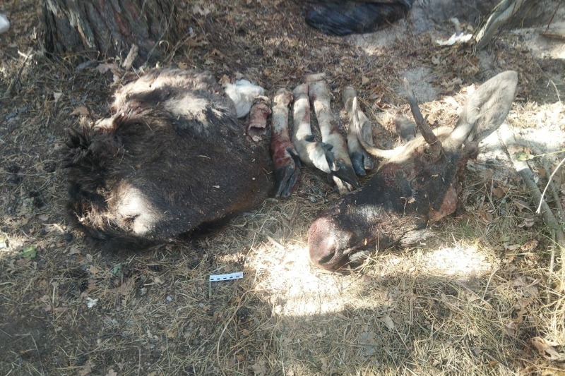 В деревне Дегтянка Сосновского округа заметили мужчин, которые занимались незаконной охотой. На месте происшествия сотрудники УУР УМВД по Тамбовской области обнаружили останки лося.