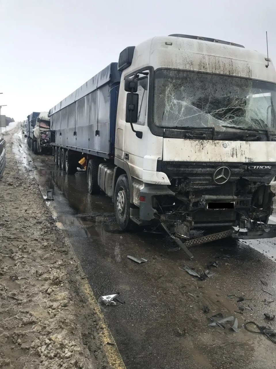 16 февраля в Знаменском округе на 486-м километре трассы Р-22 «Каспий» произошло ДТП с участием трёх большегрузов.
