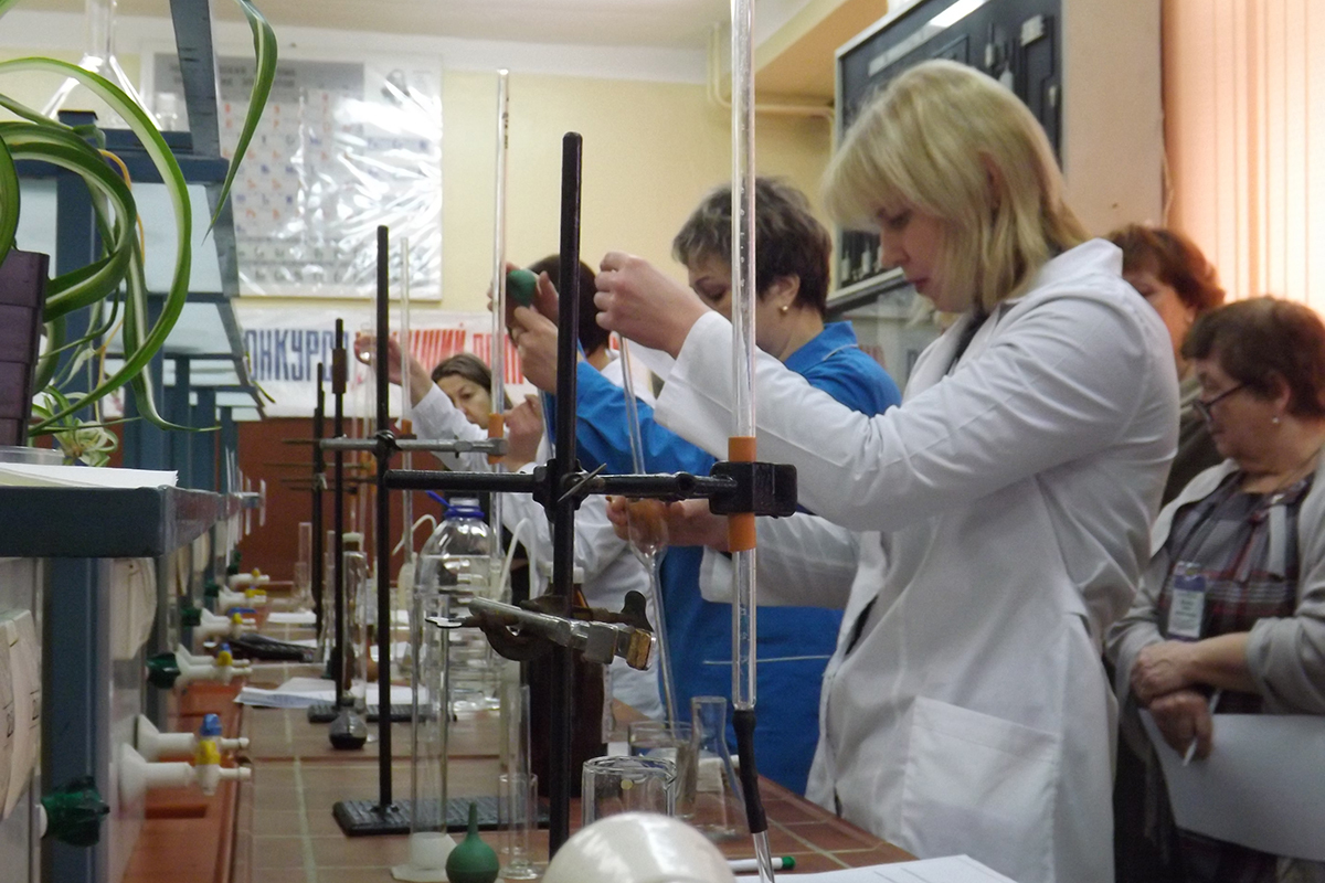 В самой химической лаборатории «Пигмента» были предоставлены все условия, причем для участников абсолютно равные. Тем не менее волнение присутствовало, тем более, что каждая операция по манипуляции с реактивами и пробирками отслеживалась недремлющим оком членов экспертной группы. Что отнюдь не исключало теплой атмосферы и дружеского сопереживания.