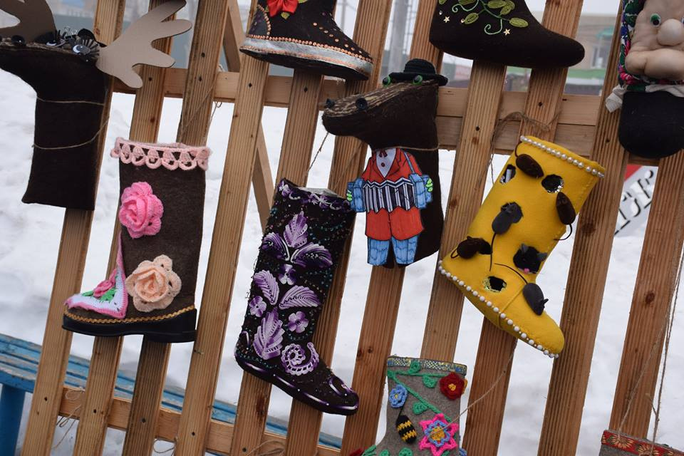 Молодые модницы даже прошли дефиле в валенках, что стало «изюминкой» праздничной программы. Да и выйти, казалось бы в старой обуви, никому не было зазорным. Мастерицы смогли украсить атрибут зимы так, что каждому хотелось примерить красивые инжавинские валенки.