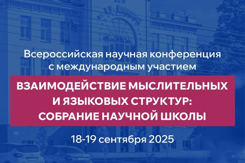 18–19 сентября состоится Всероссийская научная конференция с международным участием «Взаимодействие мыслительных и языковых структур: Собрание научной школы» (16+). Она посвящена юбилею основателя Тамбовской школы когнитивной лингвистики доктора филологических наук, профессора, заслуженного деятеля науки РФ Николая Николаевича Болдырева.