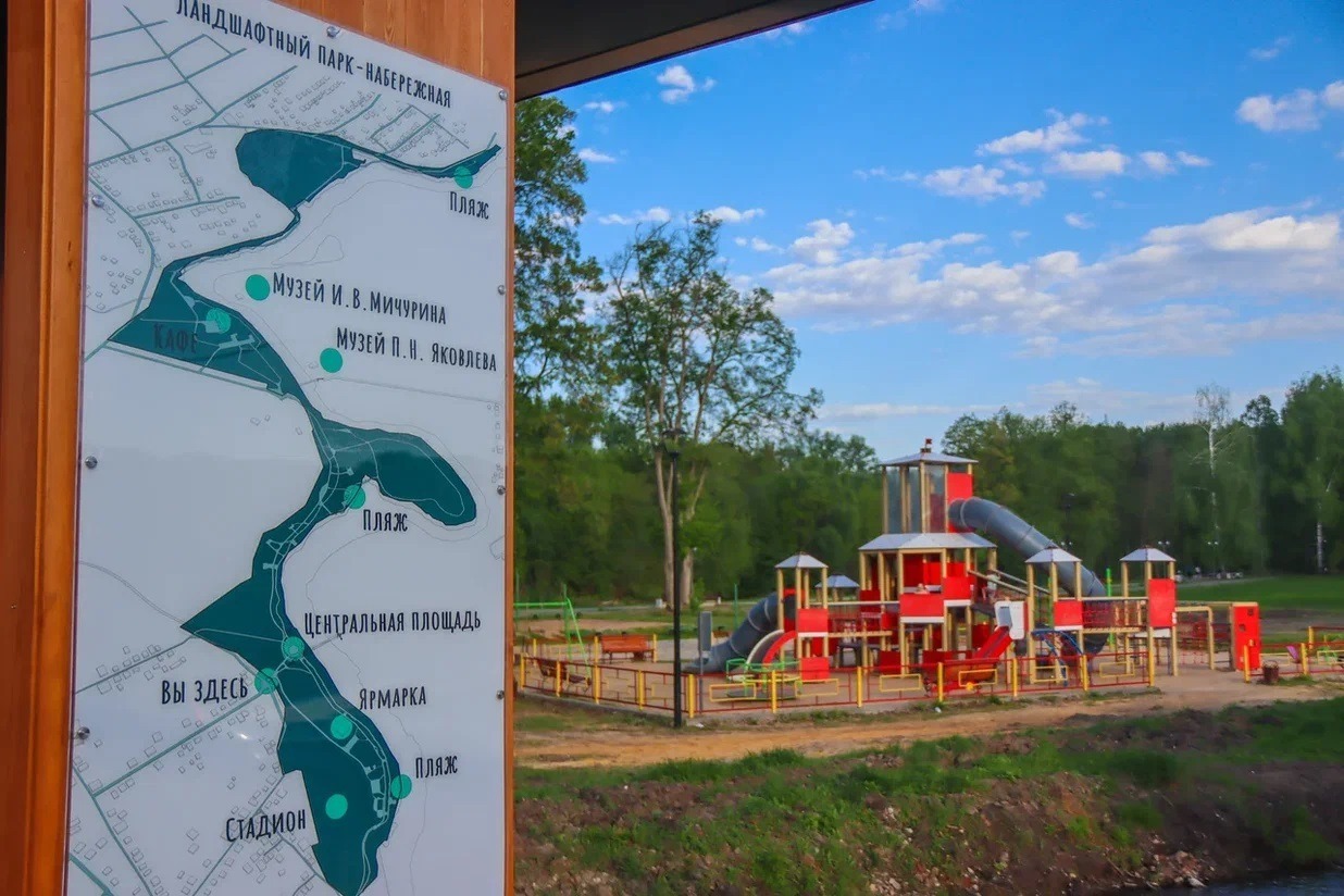 В основном работы по благоустройству парка-набережной уже завершены. Теперь перед руководством города стоит амбициозная задача — создание единого туристического маршрута «Ось И.В. Мичурина». Он соединит центр наукограда с ландшафтным парком-набережной, создавая пространство для прогулок и отдыха.