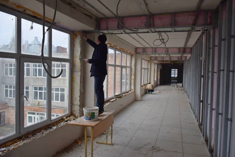 В настоящее момент новый подрядчик, который приступил к ремонту осенью, уже отремонтировал кровлю, установил стеклопакеты, уложил напольную плитку. Основные работы сфокусированы на внутренней отделке и модернизации системы отопления.