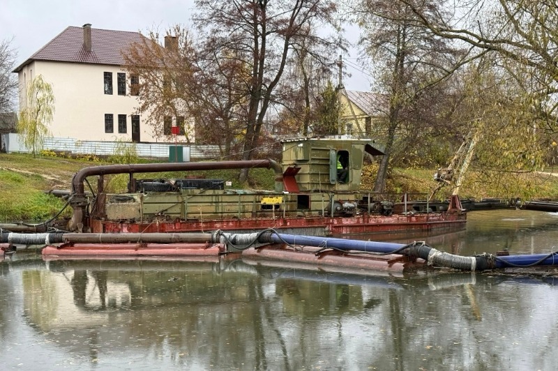 Одновременно на пяти участках Цны работают специализированные машины. Для очистки акватории в месте впадения реки Студенец в Цну в районе пляжа «Спортивный» используют геотубы.