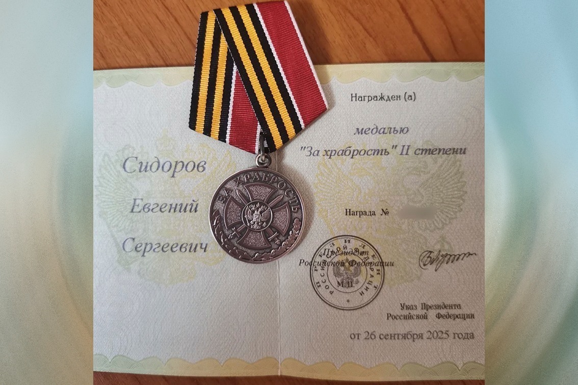 Жителя посёлка Дмитриевка Никифоровского округа Евгения Сидорова удостоили медали «За храбрость» II степени. Эту награду ему вручили за смелые и решительные действия в боевой обстановке в ходе специальной военной операции, сообщает сетевое издание «Знамя».