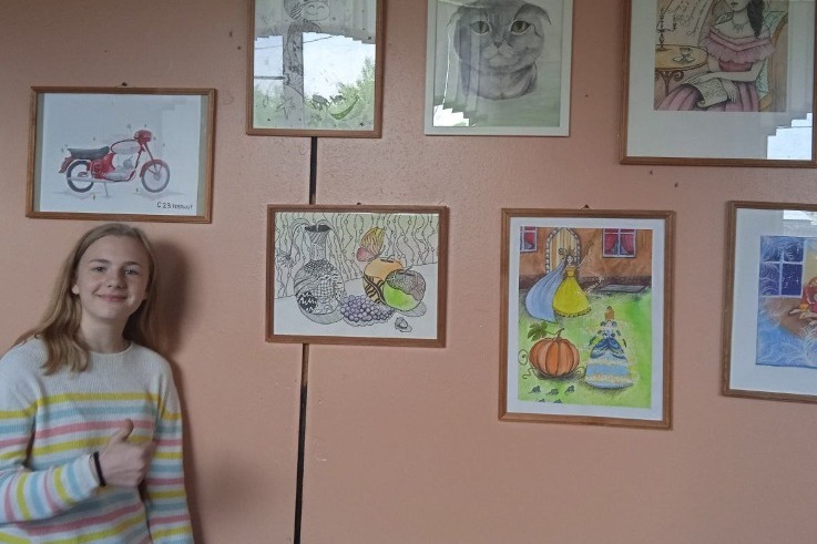 Путь, который за время обучения прошла под руководством педагога Лиза, пару лет назад нашел отражение в персональной выставке, открывшейся тогда в Доме детского творчества. Ее посетители, а это в основном воспитанники учреждения, смогли по рисункам проследить, как год за годом раскрывался талант художницы, ее любимые техники и особенности используемой цветовой гаммы.